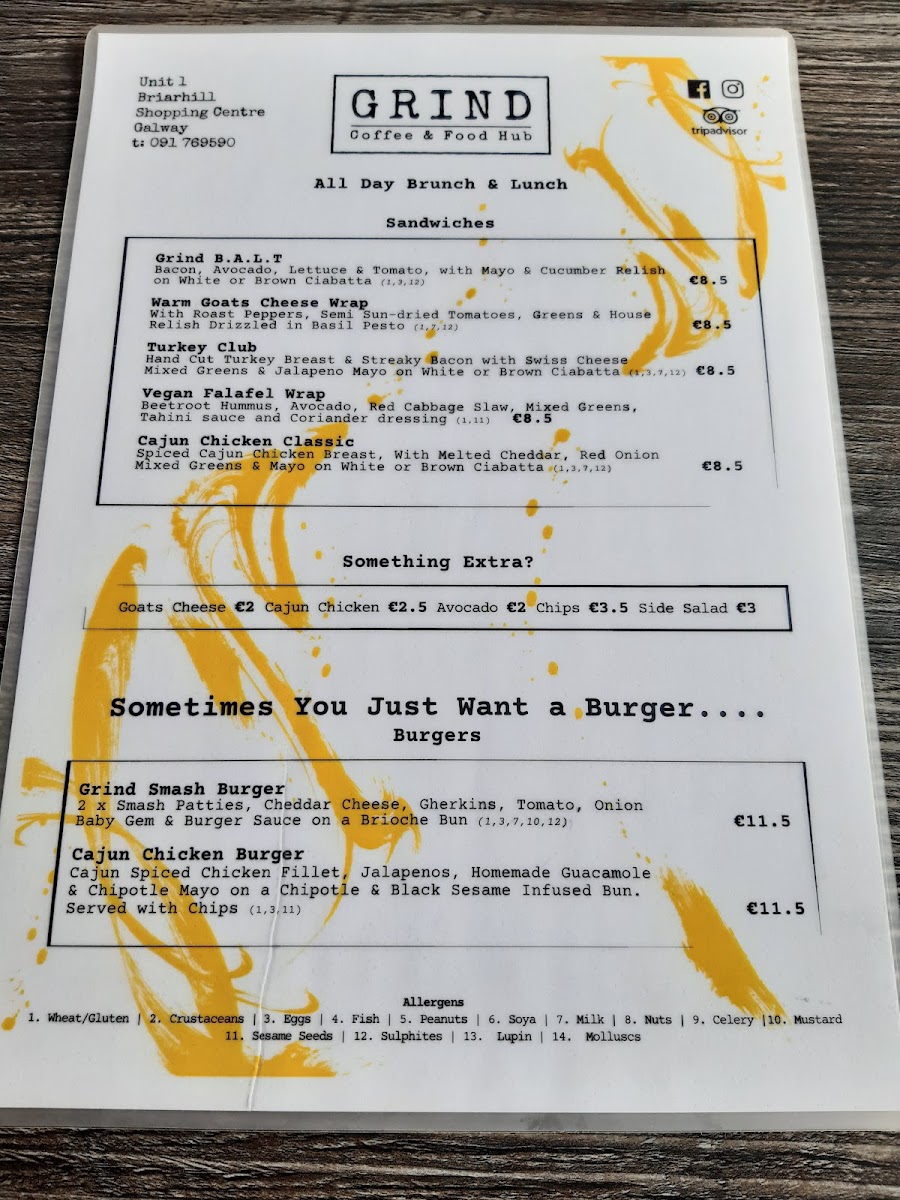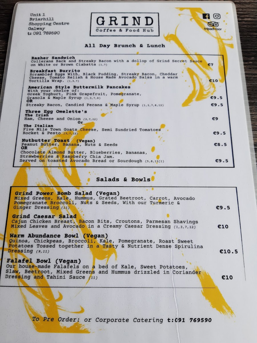 Welcome to GRIND Coffee & Food Hub, nestled in the heart of Briarhill Shopping Centre, Galway. This delightful café boasts a menu that evolves with the seasons, ensuring fresh and delicious fare year-round. Regulars rave about the beautiful food presentation, making every dish a feast for the senses.